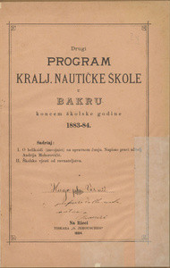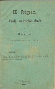 Drugi program Kraljevske nautičke škole u Bakru koncem školske godine 1883-84. ; Treći program Kraljevske nautičke škole u Bakru koncem školske godine 1884-85. ; Četvrti program Kraljevske nautičke škole u Bakru koncem školske godine 1885-86. ; Peti program Kraljevske nautičke škole u Bakru koncem školske godine 1886-87.