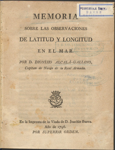 Memoria sobre las observaciones de latitud y longitud en el mar / Dionisio Alcala - Galiano